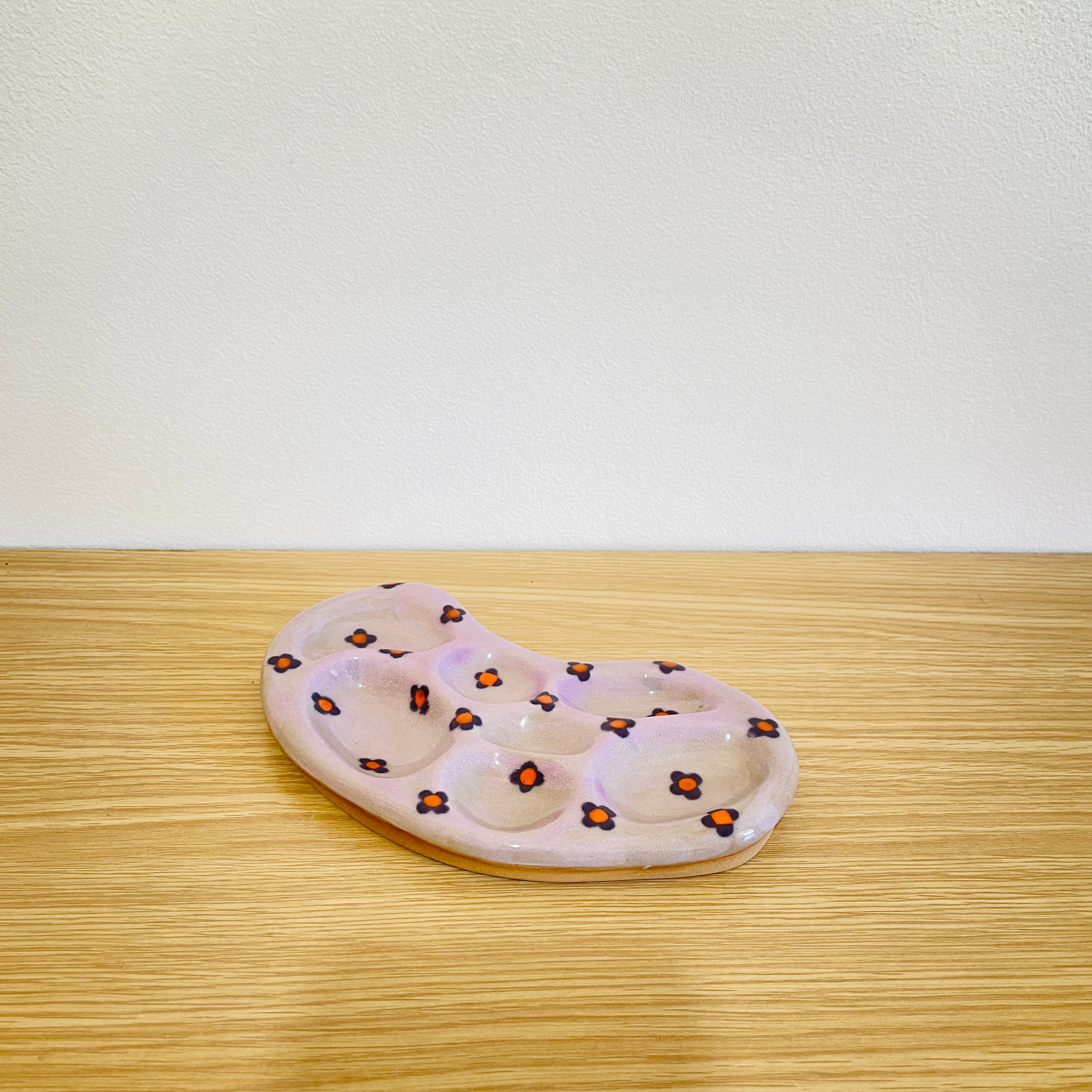 Perfectly imperfect. This hand sculpted ceramic tray in a funky abstract shape has smooth edges and shallow indents. This one of a kind tray is something a little different and not so commonly seen everyday, perfect for someone who likes "something a little different"!