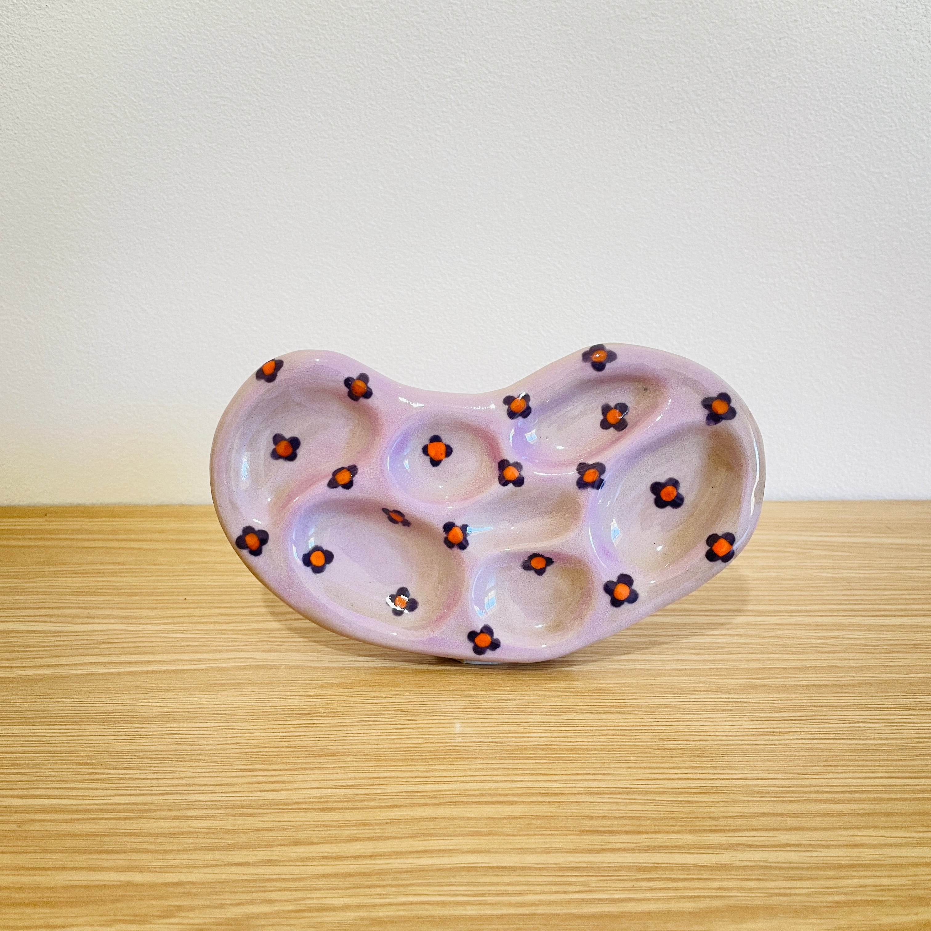 Floral Abstract Tray #2 - Lilac Wash Glaze w/ Dark Purple Flowers