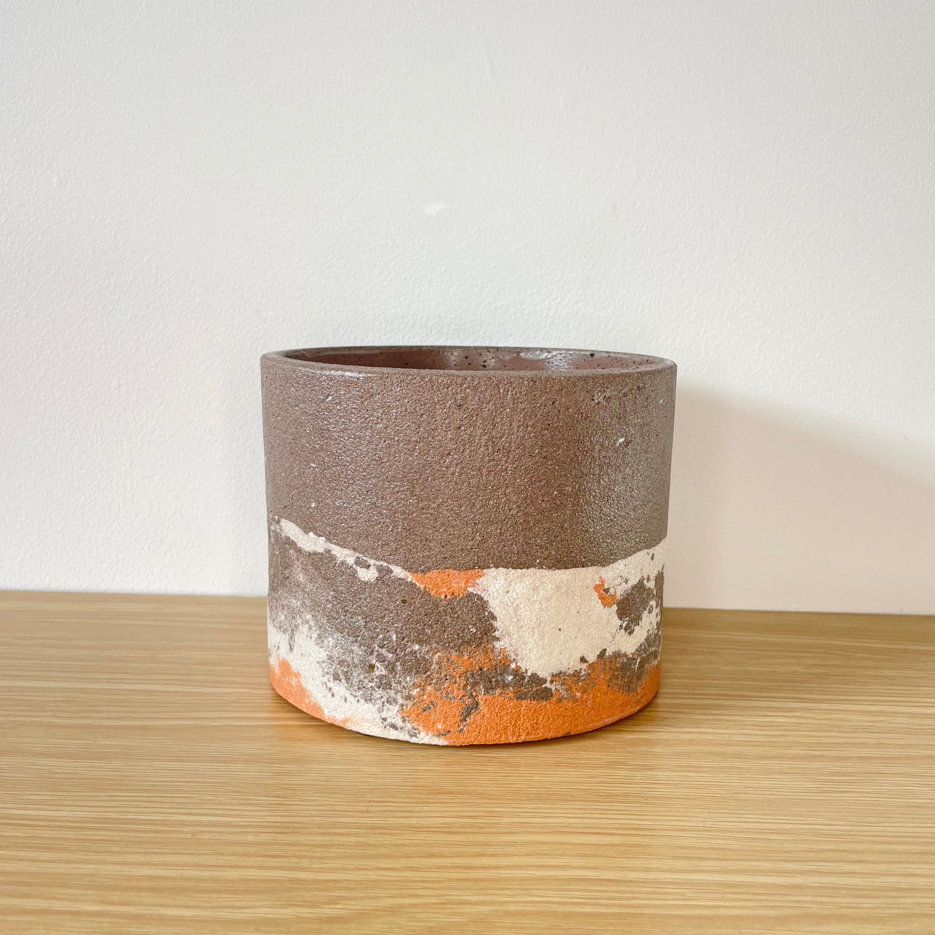 Plant pots inspired by rugged landscapes. Handcrafted using a unique technique to create a distinctive one of a kind pattern that makes colours stand out against each other, these textured plant pots are handmade to be one of a kind.