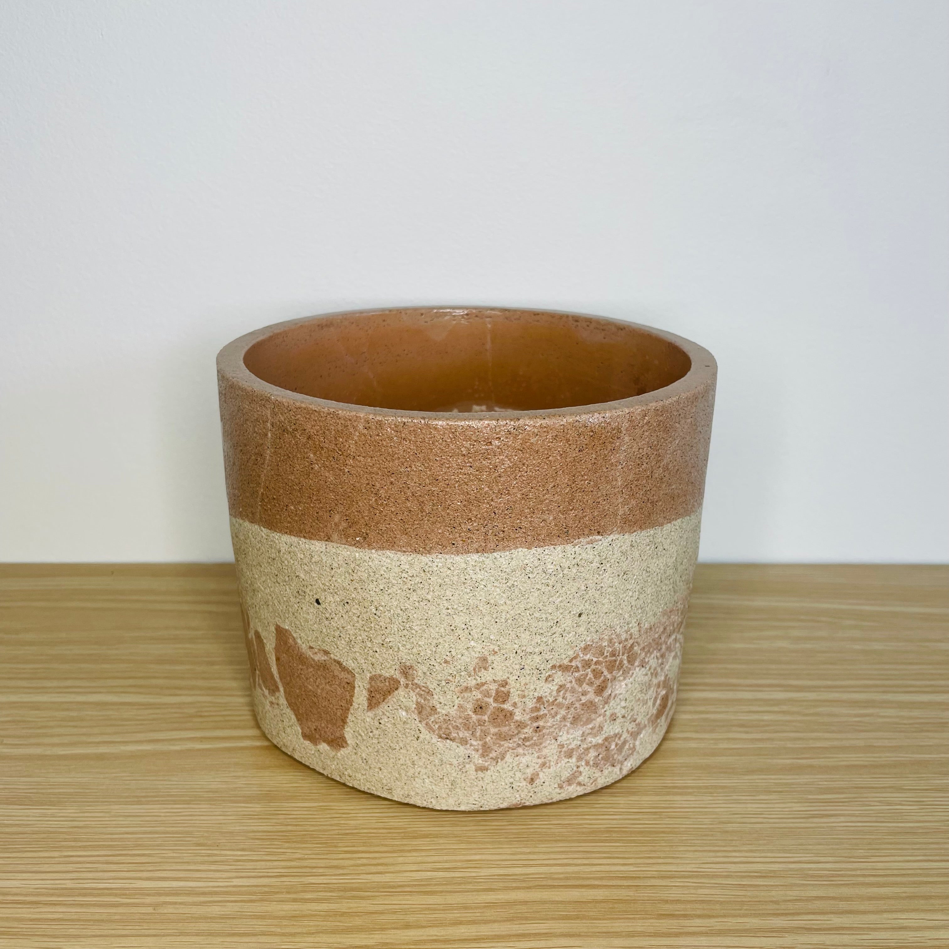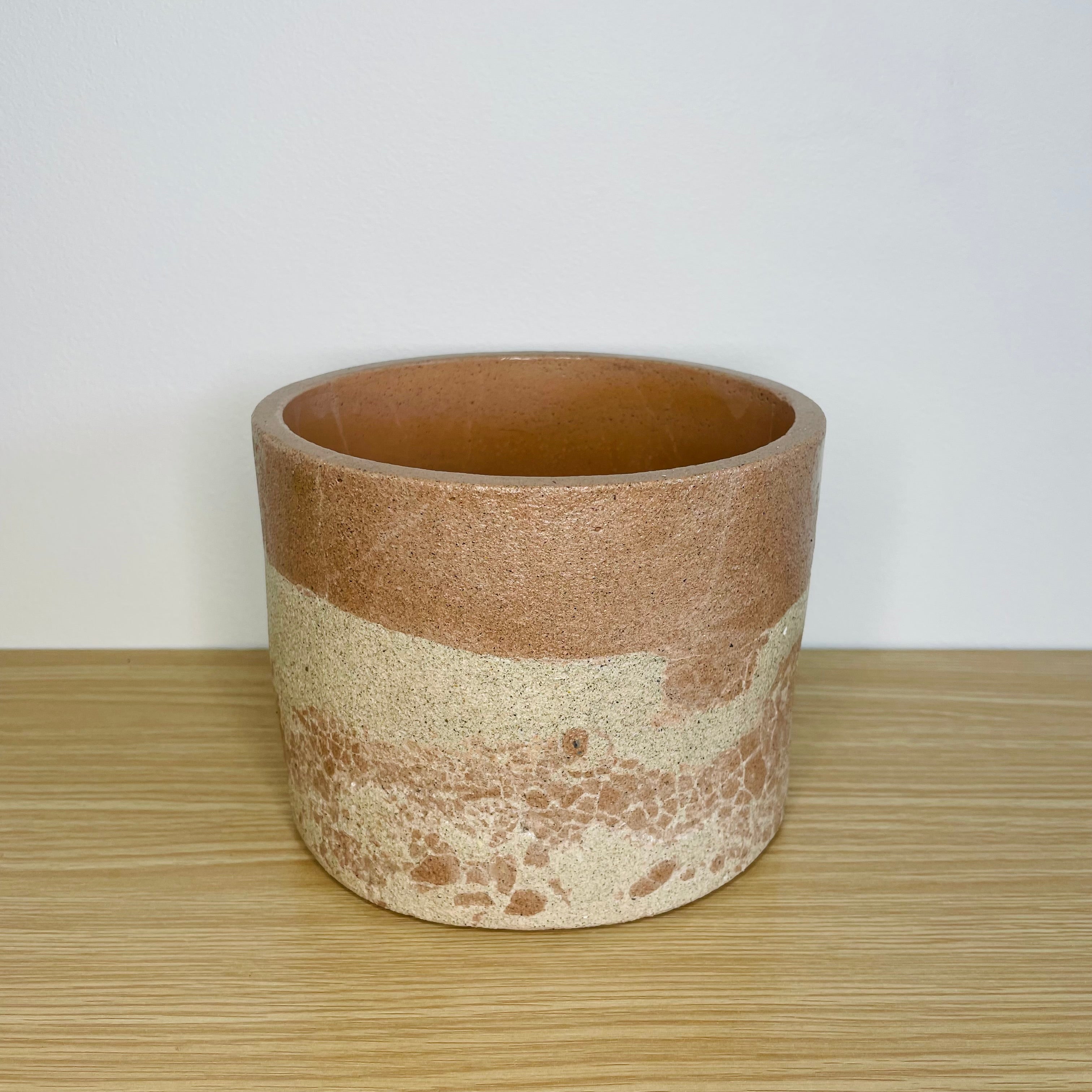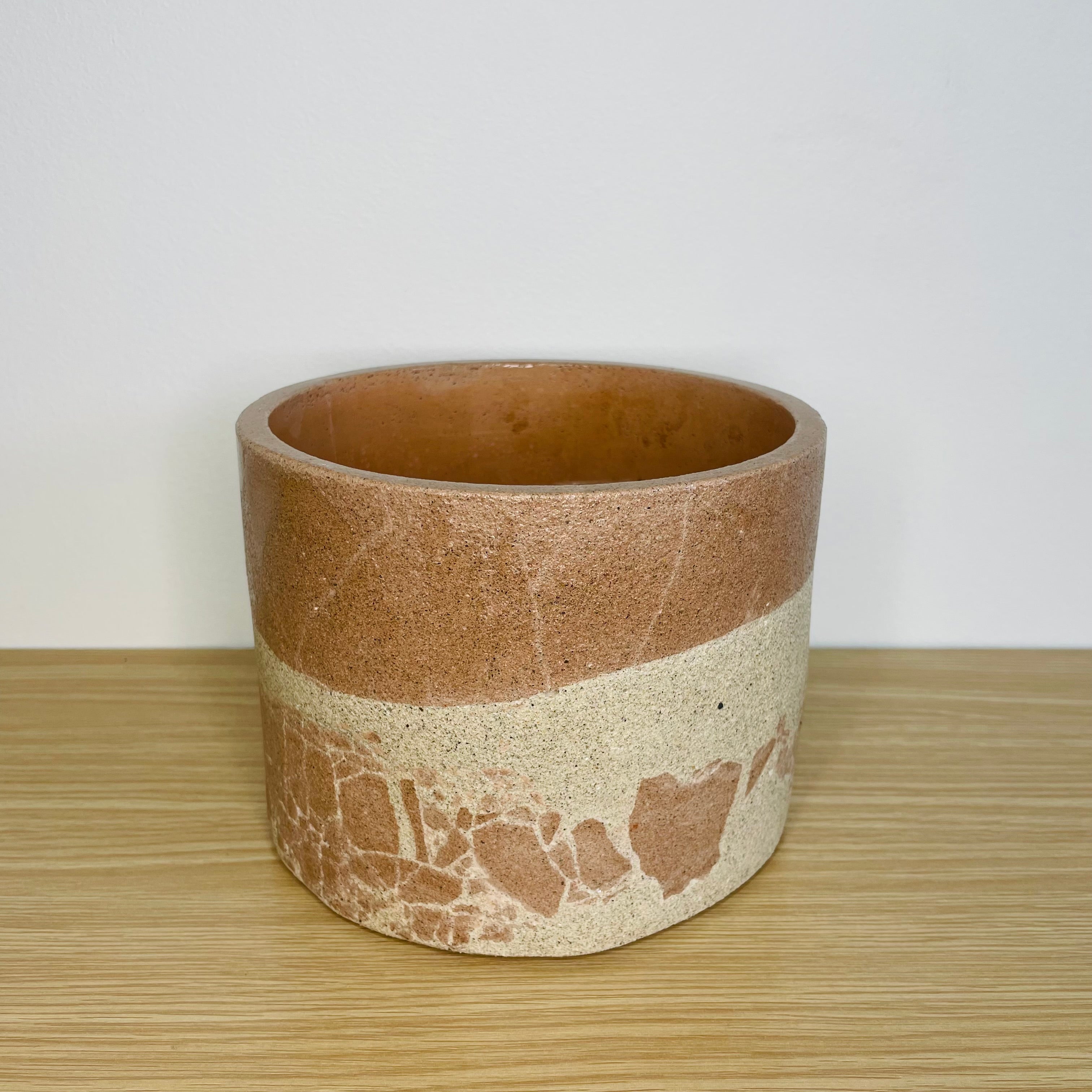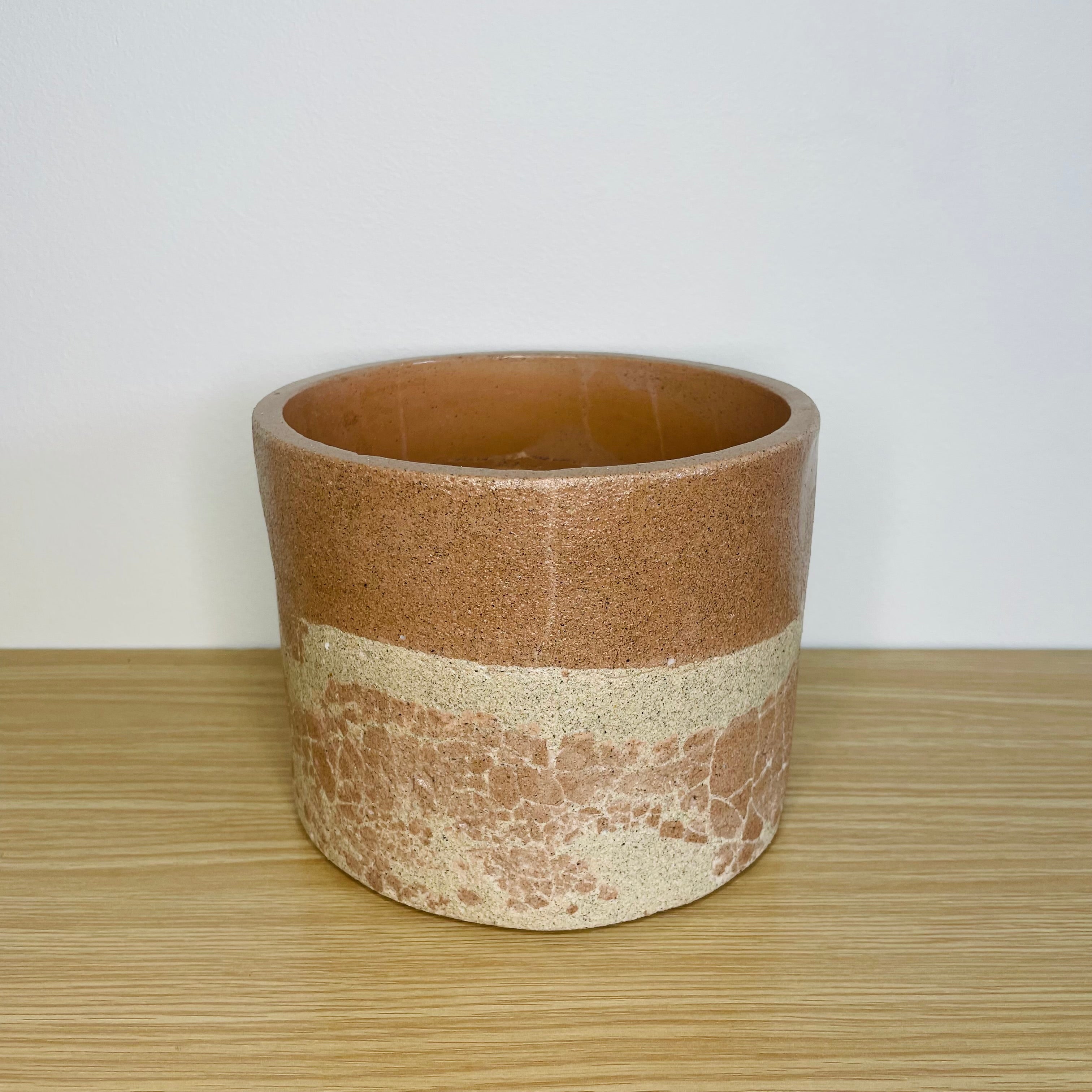Textured 15cm Round Pot - Coffee & Beige